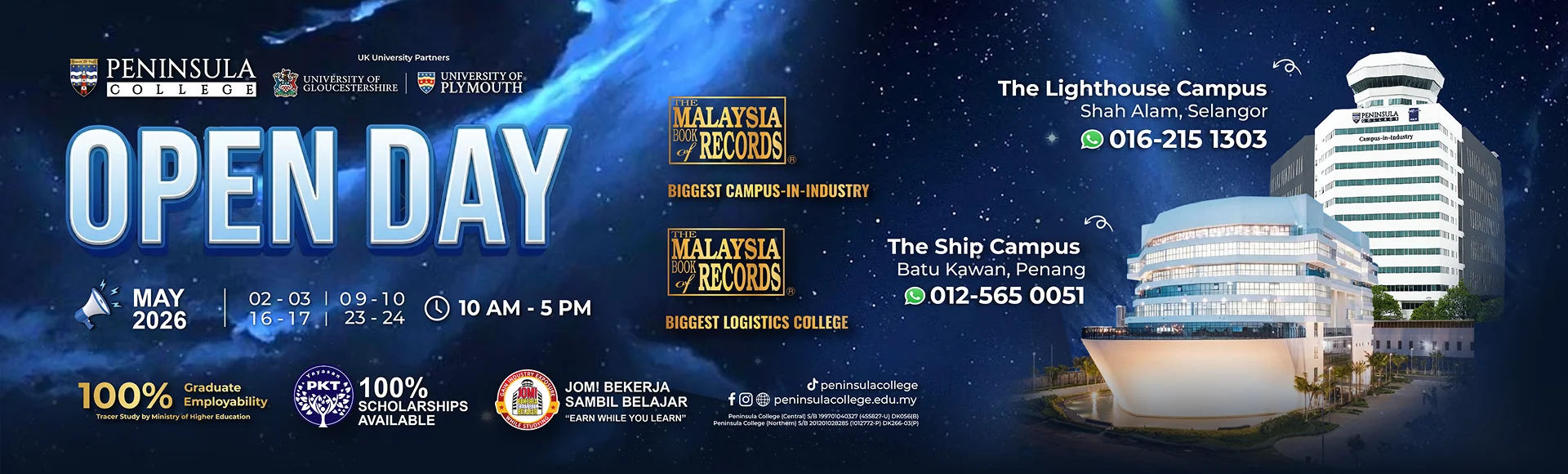 Discover your future studies path at Peninsula College during our University Open Day in Malaysia from 02-03, 09-10, 16-17, 23-24 May 2026.